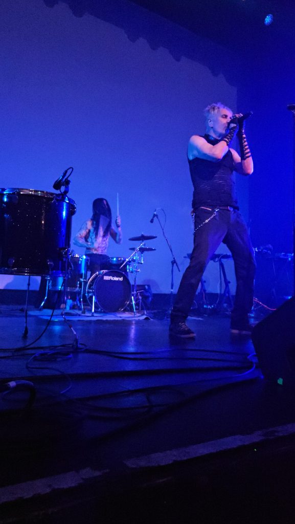 Clock DVA shifted the night’s energy. Their sound was cerebral, abstract, unsettling. The percussion thumped like a heartbeat under tension — not simply driving, but pulling you into a different headspace. Over that, Adi Newton’s vocals floated between spoken word, distant cries, and fragmented phrases, like a narrative half-remembered. At times it felt stormy, at others clinical — experimental without being aimless.